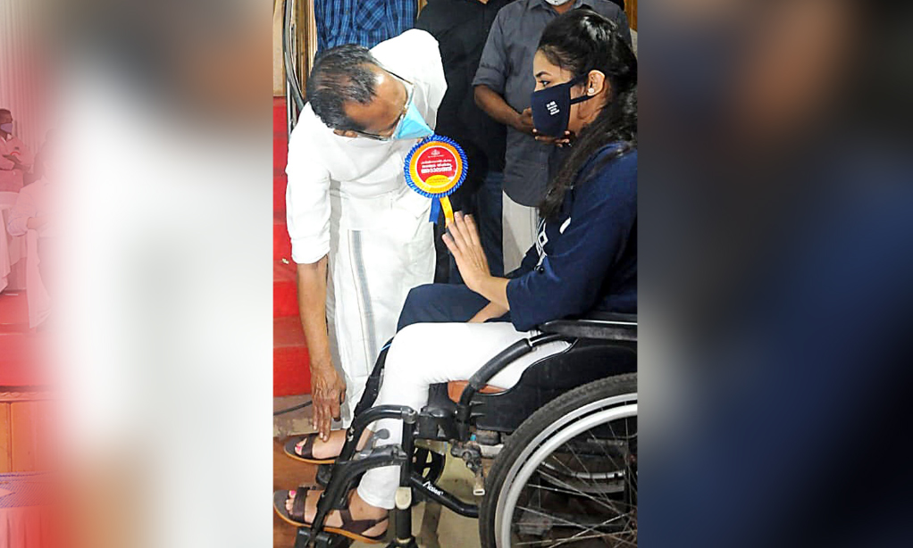 text_fieldsവാഹന അപകടത്തിൽ പെട്ട് തളർന്നുപോയ ആതിര സുഗതെൻറ കാലിൽ തൊട്ടുനോക്കുന്ന മന്ത്രി ടി.പി. രാമകൃഷ്ണൻ