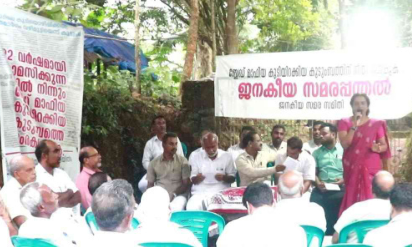 ബ്ലേഡ് മാഫിയ കുടിയൊഴിപ്പിച്ച കുടുംബത്തിന് നീതി തേടി ജനകീയ സമരപ്പന്തൽ
