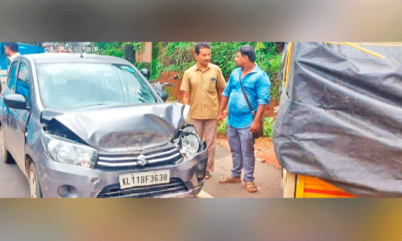 കാറിന്റെ മുൻഭാഗം തകർന്നിട്ടുണ്ട്. ആർക്കും പരിക്കില്ല. പാറക്കുളം വളവിൽ കഴിഞ്ഞമാസം നിയന്ത്രണംവിട്ട മിനി ടിപ്പർ സ്കൂട്ടറിലിടിച്ച് ദമ്പതികൾ മരിച്ചിരുന്നു.