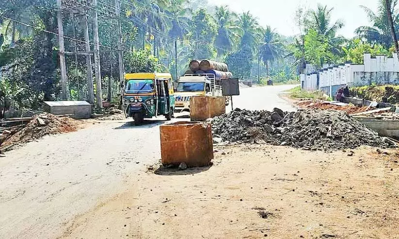 ബാലുശ്ശേരി: എസ്റ്റേറ്റ് മുക്ക് - കക്കയം റോഡിന്റെ നവീകരണ പ്രവൃത്തിയുടെ ഭാഗമായി നടക്കുന്ന തെച്ചിപ്പാലത്തിന്റെയും സമീപത്തെ കലുങ്ക് നിർമാണത്തിന്റെയും പ്രവൃത്തി നിർത്തിവെച്ചത് യാത്രക്കാർക്ക് ദുരിതമാകുന്നു. വാട്ടർ അതോറിറ്റിയുടെ പൈപ്പ് ലൈനും ഗ്യാസ് പൈപ്പ് ലൈനും മാറ്റി സ്ഥാപിക്കാനായാണ് പണി നിർത്തിവെച്ചത്.