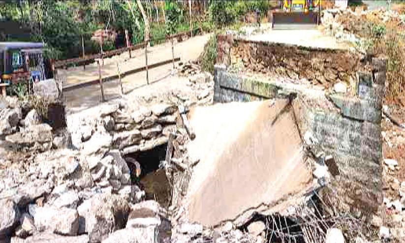 പുനർ നിർമാണത്തിനായി എസ്റ്റേറ്റ് മുക്ക് - കക്കയം റോഡിലെ പഴയ തെച്ചിപ്പാലം പൊളിച്ചു മാറ്റിയ നിലയിൽ