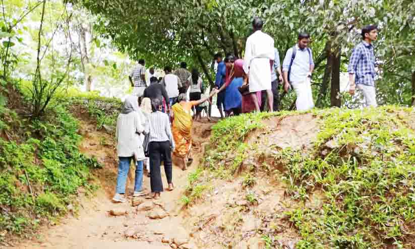 text_fieldsകരിയാത്തും പാറ ടൂറിസം കേന്ദ്രത്തിലെ റിസർവോയർ തീരത്തേക്ക് സഞ്ചാരികൾ ഊടുവഴിയിലൂടെ