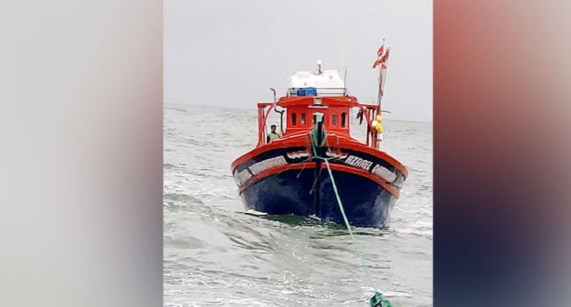 അപകടത്തിൽപെട്ട ബോട്ടും എട്ടു തൊഴിലാളികളെയും രക്ഷപ്പെടുത്തി