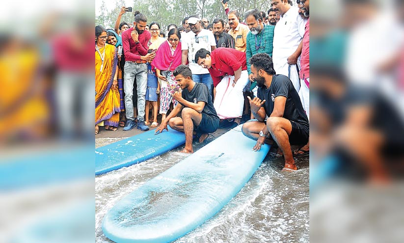 സർഫിങ്ങിന് പരിശീലനത്തിറങ്ങുന്നവരെ മന്ത്രി
