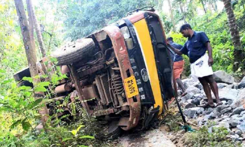 കരിങ്കല്ലുമായി പോയ ലോറി നിയന്ത്രണം വിട്ടു മറിഞ്ഞ നിലയിൽ