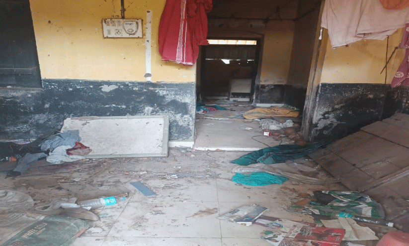 ഉപയോഗിച്ച സിറിഞ്ചും മദ്യക്കുപ്പികളും അടുപ്പും തീപ്പെട്ടിയുമെല്ലാം കെട്ടിടവളപ്പിലുണ്ട്. ഹരിതകർമസേന ശേഖരിക്കുന്ന പ്ലാസ്റ്റിക് മാലിന്യവും മറ്റും ഇവിടെയാണിപ്പോൾ താൽക്കാലികമായി കൊണ്ടിടുന്നത്. പ്രവേശന കവാടത്തിൽ മാലിന്യചാക്കുകളുള്ളതിനാൽ അകത്ത് ഒളിഞ്ഞിരിക്കാൻ കൂടുതൽ സൗകര്യമാവുന്നു. കെട്ടിടത്തിന്റെ ഒരുഭാഗത്ത് മതിലില്ല. ഉള്ള മതിൽതന്നെ ചാടിക്കടക്കാൻ പാകത്തിലുള്ളതാണ്. തുറന്നു കിടക്കുന്ന മുറികൾക്കുള്ളിൽ വസ്ത്രങ്ങളും പാത്രങ്ങളുമുണ്ട്. കെട്ടിടത്തിന്റെ മുറ്റത്തും സിറിഞ്ചും മദ്യക്കുപ്പിയുമെല്ലാമുണ്ട്. അടുപ്പുകളിൽ ലഹരിമരുന്നുകൾ ചൂടാക്കിയ ലക്ഷണവുമുണ്ട്. പുതിയ കെട്ടിടം പ്രഖ്യാപിച്ചെങ്കിലും അതിന്റെ പണി തുടങ്ങുവോളം പഴയ കെട്ടിടം കൊണ്ടുള്ള ദുരിതം പേറണമോയെന്നാണ് ചോദ്യം.