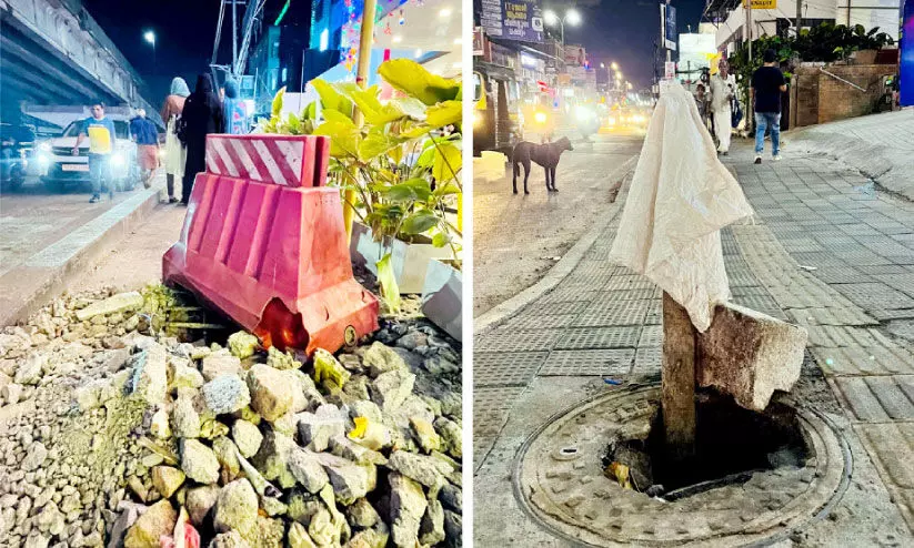 നഗര മധ്യത്തിൽ ജനത്തിരക്കേറിയ പല ഭാഗത്തും ഇത്തരത്തിലുള്ള ചതിക്കുഴികൾ നിറന്നിരിക്കുന്നുണ്ട്. മാവൂർ റോഡിൽ കെ.എസ്.ആർ.ടി.സിക്ക് സമീപം നടപ്പാതയിലെ മാൻഹോളിന്റെ മൂടി തകർന്നിട്ട് മാസങ്ങളായിട്ടും അറ്റകുറ്റപ്പണി നടത്താൻ അധികൃതർ തയ്യാറായിട്ടില്ല. ഇവിടെ മുന്നറിപ്പായി ഒരു മരക്കഷണം കുത്തിവെക്കുക മാത്രമാണ് ചെയ്തത്. സദാസമയവും തിരക്കേറിയ നടപ്പാതയിൽ ഇത് അപകട ഭീഷണിയാവുകയാണ്. മാനാഞ്ചിറക്ക് സമീപത്തും ബീച്ച് റോഡിലും ഇത്തരത്തിലുള്ള അപകടങ്ങൾ പതിയിരിക്കുന്നുണ്ട്.