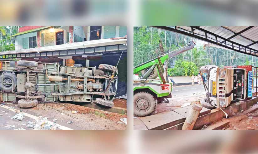text_fieldsകരുമല വളവിൽ വ്യാഴാഴ്ച പുലർച്ചെ അപകടത്തിൽപെട്ട വാഹനങ്ങൾ