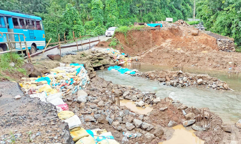 പൊതുമരാമത്ത് മന്ത്രി മുഹമ്മദ് റിയാസ് ഡിസംബറിൽ പുതിയ പാലത്തിന്റെ പ്രവൃത്തി ഉദ്ഘാടനം നിർവഹിക്കുകയും ചെയ്തിരുന്നു. രണ്ടു കോടി രൂപയാണ് നിർമാണത്തിന് വകയിരുത്തിയത്. ഒരു വർഷം കൊണ്ട് പ്രവൃത്തി പൂർത്തീകരിക്കുമെന്നായിരുന്നു പ്രഖ്യാപനം. എന്നാൽ, പാലം പൊളിച്ചു നീക്കി നാലു മാസം കഴിഞ്ഞെങ്കിലും നിർമാണം ഇപ്പോഴും പ്രാരംഭ ഘട്ടത്തിലാണ്. പാലം പൊളിച്ചതോടെ സമാന്തരമായി നിർമിച്ച താൽക്കാലിക റോഡ് കനത്ത മഴയിൽ തകർന്നു. ബുധനാഴ്ച രാവിലെ താൽക്കാലിക റോഡ് ചളിക്കുളമായി മാറിയതോടെ ഗതാഗത സ്തംഭനമുണ്ടായി. ക്വാറി മാലിന്യം ഇറക്കിയാണ് വീണ്ടും ഗതാഗതം പുനഃസ്ഥാപിച്ചത്. കാലവർഷം കനത്താൽ സമാന്തരമായി നിർമിച്ച താൽക്കാലിക റോഡും ഒലിച്ചു പോകാൻ സാധ്യതയുണ്ട്. റോഡിന് കുറുകെയുള്ള അറോക്കുംതോട് വെള്ളം കയറി നിറഞ്ഞൊഴുകുകയാണ്. മഴ കനത്താൽ പ്രവൃത്തി മുന്നോട്ടു കൊണ്ടുപോകുക ഏറെ പ്രയാസമായിരിക്കും. ശക്തമായ കുത്തൊഴുക്കിൽ റോഡ് ഇടിയാനും സാധ്യത ഏറെയാണ്.