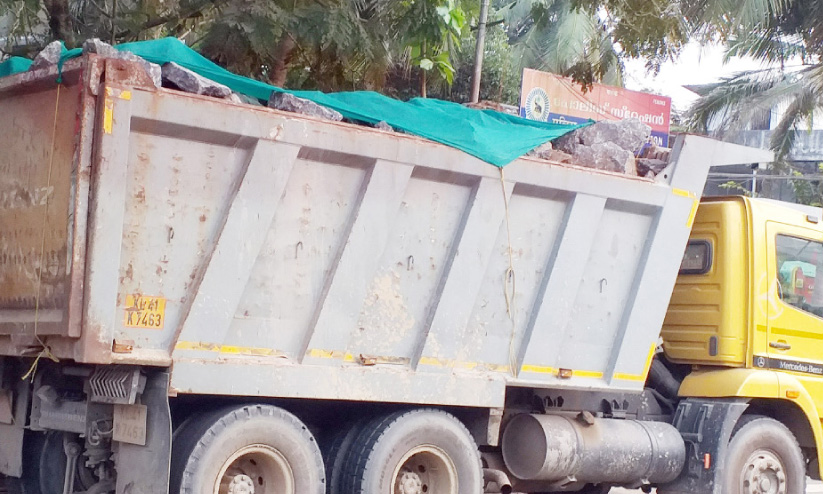 ഓട്ടത്തിനിടയിൽ ലോറിയിൽനിന്ന് കരിങ്കല്ല് വീണു; വാഹനയാത്രക്കാർ രക്ഷപ്പെട്ടത് തലനാരിഴക്ക്