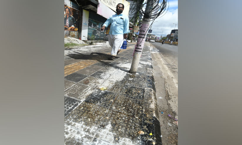 ചൊവ്വാഴ്ച ഫൂട്പാത്തിൽ മഞ്ഞനിറത്തിലുള്ള മാലിന്യം അടിഞ്ഞ അവസ്ഥയിലായിരുന്നു. ഇത് കക്കൂസ് മാലിന്യമല്ലെന്നും ഹോട്ടൽ മാലിന്യമാണെന്നുമാണ് കോർപറേഷൻ-ആരോഗ്യവകുപ്പ് അധികൃതർ പറയുന്നത്. ഓയിൽ കലർന്ന ഭക്ഷ്യാവശിഷ്ടം തങ്ങിക്കിടക്കുന്നത് മഴപെയ്തപ്പോൾ പുറത്തേക്കൊഴുകിയതാണെന്നാണ് അധികൃതർ പറയുന്നത്. നടപ്പാത നിറയെ ടൈൽസ് വിരിച്ചതിനാൽ ഇത്തരം പ്രശ്നങ്ങൾ കണ്ടുപിടിക്കാൻ കഴിയാത്ത അവസ്ഥയാണ്.