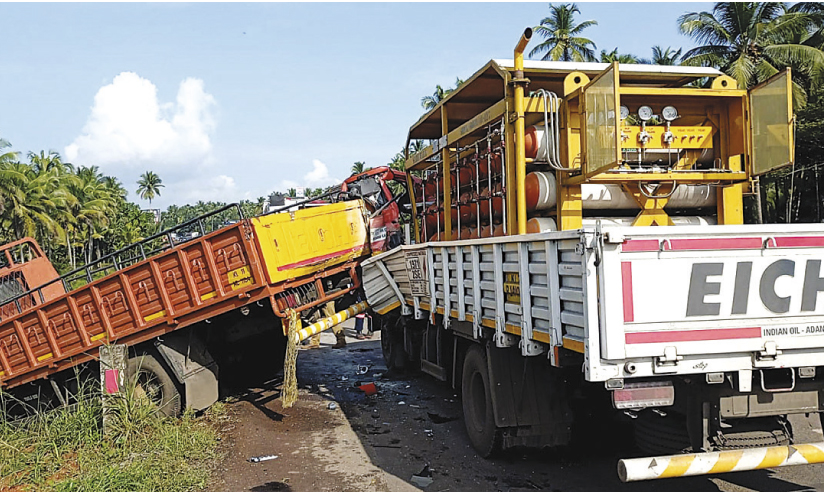 ചേമഞ്ചേരി, കൊയിലാണ്ടി ഭാഗത്തെ പമ്പുകളിലേക്കുള്ളതായിരുന്നു സിലിണ്ടർ. കോഴിക്കോടുനിന്ന് ഇരുമ്പ് ഷീറ്റുമായി തലശ്ശേരിക്ക് പോകുകയായിരുന്ന കെ.എൽ 11 എ.സി 1184 മിനിലോറിയിലാണ് ഗ്യാസ് ലോറി ഇടിച്ചത്. ഇടിയെ തുടർന്ന് സിലിണ്ടറുമായി ബന്ധിപ്പിച്ച പൈപ്പ് പൊട്ടി വാതകം ചോർന്നു. ഗ്യാസ് ലോറിയുടെ മുൻഭാഗം തകരുകയും അതിലുണ്ടായിരുന്ന ഡ്രൈവർ നവീഷ് , ശോഭാനന്ദ് എന്നിവർക്ക് പരിക്കേൽക്കുകയും ചെയ്തു. കാലിനും തലക്കും പരിക്കേറ്റ ഇവരെ സ്വകാര്യ ആശുപത്രിയിൽ പ്രവേശിപ്പിച്ചു.