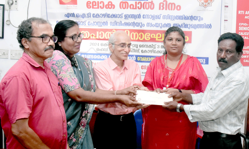 ചൊവ്വാഴ്ച തപാൽ ദിനത്തിന്റെ ഭാഗമായി ഹെഡ് പോസ്റ്റോഫിസിൽ സംഘടിപ്പിച്ച യോഗത്തിൽ വേലായുധനെ ആദരിച്ചു. കാലിക്കറ്റ് ഡിവിഷൻ പോസ്റ്റൽ അഫയേഴ്സ് അസി. സൂപ്രണ്ട് കെ. ശുഭ ഉദ്ഘാടനം ചെയ്തു. എൻ.ഐ.ടിയിലെ സെന്റർ ഫോർ ഇന്ത്യൻ നോളജ് സിസ്റ്റംസിലെ പ്രഫ. ഡോ. ആർ. ശ്രീധരൻ അധ്യക്ഷത വഹിച്ചു. പ്രഫ. വർഗീസ് മാത്യു, ഡോ. ഗോഡ്വിൻ സമ്രാജ്, ഡോ. എ.കെ കസ്തൂർബ, വി.പി. വിജയൻ, കെ.വി സഫീർ, കെ.കെ സിജിലേഷ്, സി. ഹൈദരലി എന്നിവർ സംസാരിച്ചു.