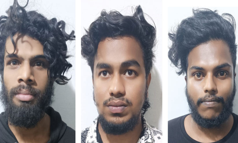 കോഴിക്കോട് കുന്ദമംഗലം പുൽപറമ്പിൽ വി.ആർ. ഹരികൃഷ്ണൻ (24), വെള്ളിപറമ്പ് ചെറുകുന്നത്ത് വീട്ടിൽ പി.സി. അക്ഷയ് (22), തൃശൂർ ചേലക്കര പാഞ്ഞാൾ വടക്കേക്കര പറമ്പിൽ വി.എം. രഞ്ജിത്ത് (24) എന്നിവരെയാണ് പൊലീസ് പിടികൂടിയത്.
