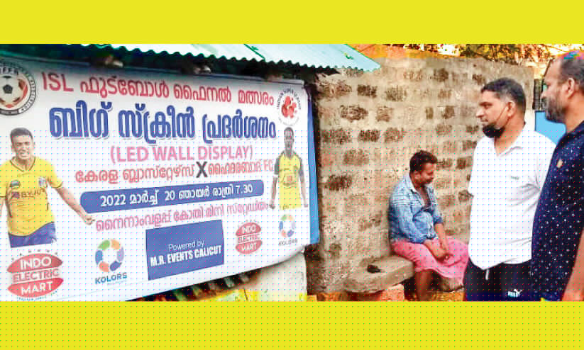 text_fieldsനൈനാം വളപ്പിൽ ഐ.എസ്.എൽ ഫൈനൽ മത്സരത്തിന്റെ ബിഗ് സ്ക്രീൻ പ്രദർശനത്തിന്റെ ബോർഡ്