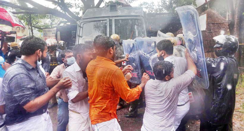 മുസ്ലിം യൂത്ത് ലീഗ് ജില്ല കമ്മിറ്റി സിറ്റി പൊലീസ് മേധാവി ഓഫിസിലേക്ക് നടത്തിയ മാർച്ചിനുനേരെ ജലപീരങ്കി പ്രയോഗിച്ചു. ഓഫിസിന് സമീപം സ്ഥാപിച്ച ബാരിക്കേഡ് തള്ളിയിടാൻ ശ്രമിച്ചതോടെയാണ് പ്രവർത്തകർക്കുനേരെ പൊലീസ് ജലപീരങ്കി പ്രയോഗിച്ചത്. തുടർന്ന് പ്രവർത്തകർ റോഡ് ഉപരോധിച്ചു.