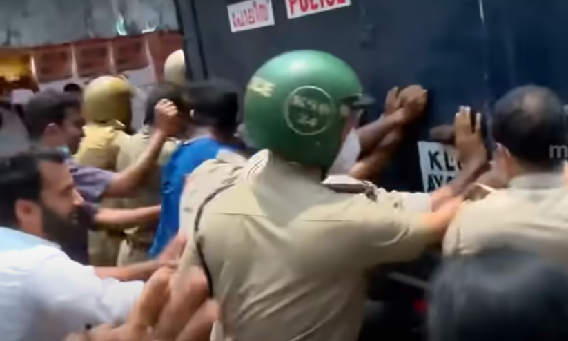 തള്ള് തള്ള്.. തള്ള് തള്ള്.. തള്ളിക്കൊട് വണ്ടീ... ഡീസൽ തീർന്ന പൊലീസ് വണ്ടി തള്ളി കെ റെയിൽ സമരക്കാർ -VIDEO