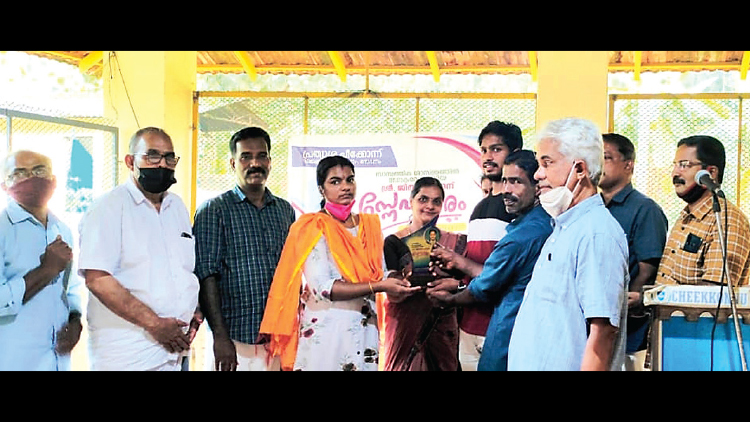 text_fieldsപ്രത്യാശ നമ്പ്യത്താംകുണ്ട് നൽകിയ ഉപഹാരം വാർഡ് മെംബർ ലിബിയയിൽനിന്ന് ജിതിനും പിതാവ് ചന്ദ്രനും ചേർന്ന് സ്വീകരിക്കുന്നു