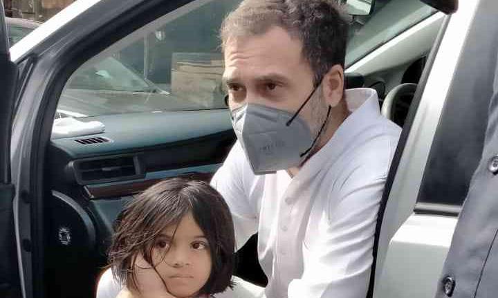 രാഹുൽ ഗാന്ധി അഫ്രിനെ വിളിച്ച് വരുത്തി മടിയിലിരുത്തി കുശലാന്വേഷണം നടത്തുന്നു