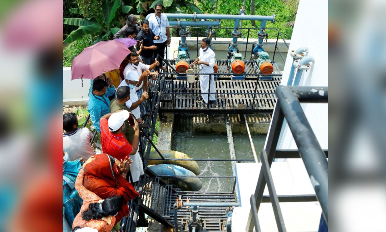 text_fieldsപ്ലാന്റിലെ ശുദ്ധീകരിച്ച ജലം പദ്ധതി സംഘാംഗങ്ങള് പരിശോധിക്കുന്നു