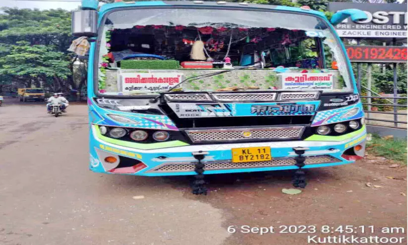 text_fieldsമരച്ചില്ല വീണ് തകർന്ന ബസ്
