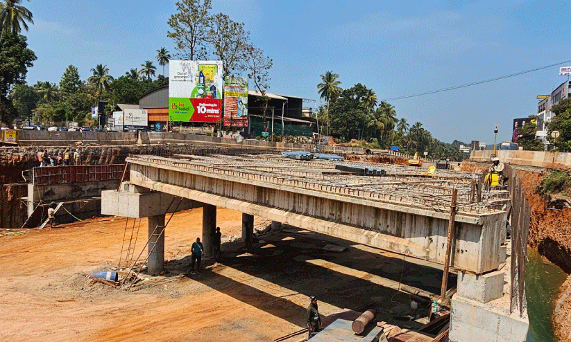 40 മീറ്ററിലാണ് നിർമാണം. ഈ ഭാഗത്ത് പതിനൊന്നരയടിയോളം മണ്ണ് താഴ്ത്തിയാണ് നിർമിക്കുന്നത്. ഗർഡറുകൾ സ്ഥാപിച്ചു കഴിഞ്ഞാൽ കമ്പികൾ കെട്ടി കോൺക്രീറ്റ് ആരംഭിക്കും.