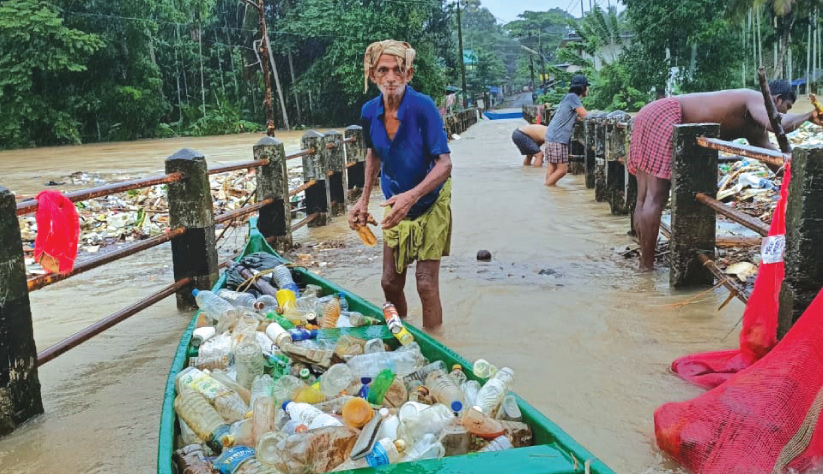 ചെറുപുഴയിൽ കുറ്റിക്കടവ് പാലത്തിന് മുകൾഭാഗത്ത് അടിഞ്ഞ പ്ലാസ്റ്റിക് കുപ്പികൾ ശേഖരിക്കുന്ന ഖാദർ