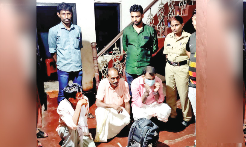 മലപ്പുറം ജില്ലയിലെ കാളികാവ് സ്വദേശി സുഫൈൽ, ഷറഫുദ്ദീൻ കരുളായി, നസീർ പെരിന്തൽമണ്ണ എന്നിവരെയാണ് മുക്കത്തെ സ്വകാര്യ ലോഡ്ജിൽ നിന്നും പിടികൂടിയത്. നോർത്ത് കാരശ്ശേരി സ്വദേശി മുഹമ്മദ്, ചങ്ങരംകുളം സ്വദേശി കുമാർ എന്നിവരെ നോർത്ത് കാരശ്ശേരിയിലെ വാടക വീട്ടിൽവെച്ചുമാണ് പിടികൂടിയത്. ഇവർ സഞ്ചരിച്ച ഇന്നോവ കാറും കസ്റ്റഡിയിലെ ടുത്തിട്ടുണ്ട്.