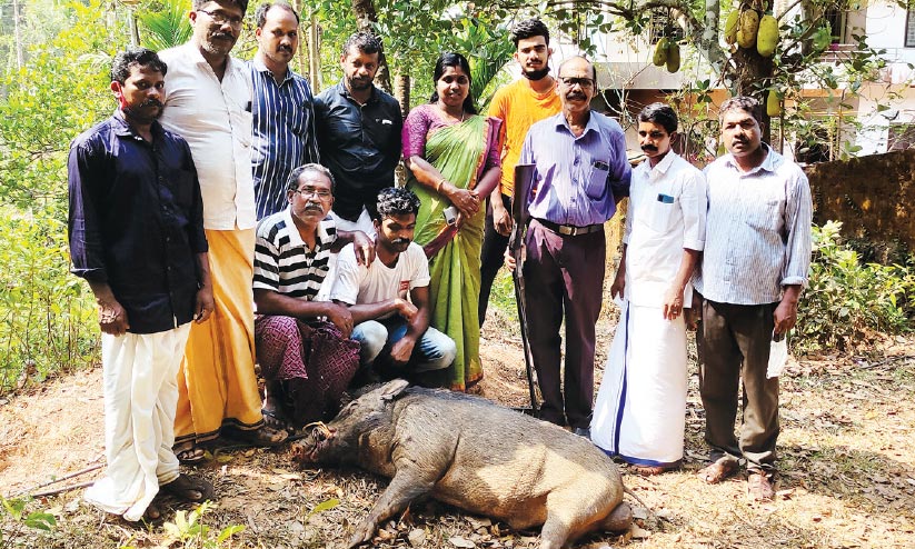 ഷൂട്ടര് ബാലേട്ടന് വിശ്രമമില്ല; വീണ്ടും രണ്ടു പന്നികളെ വെടിവെച്ചു കൊന്നു