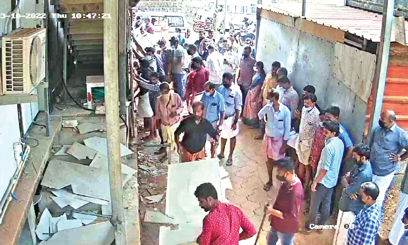 text_fieldsസ്വകാര്യ വ്യക്തിയുടെ കെട്ടിടത്തോട് ചേർന്ന് നിർമിച്ച ഇരുമ്പ് ഗേറ്റ് ഉദ്യോഗസ്ഥരുടെയും പൊലീസുകാരുടെയും സാന്നിധ്യത്തിൽ മുറിച്ചുമാറ്റുന്നു