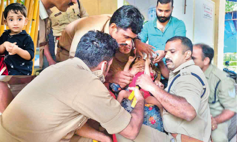 പാത്രം ഊരിയെടുക്കാനുള്ള എല്ലാ ശ്രമവും പരാജയപ്പെട്ടതോടെ കുട്ടിയെയുമെടുത്ത് കിലോമീറ്ററുകൾ അകലെയുള്ള ചേലക്കാട് ഫയർ സ്റ്റേഷനിലെത്തി. സ്റ്റേഷനിലെ ഉദ്യോഗസ്ഥർ കട്ടർ ഉപയോഗിച്ച് വിദഗ്ധമായി പാത്രം മുറിച്ചു മാറ്റി കുട്ടിയെ രക്ഷിച്ചപ്പോഴാണ് ഏവർക്കും ആശ്വാസമായത്.