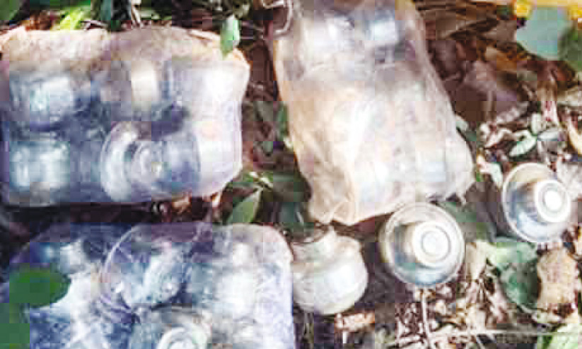 മരത്തിൻചുവട്ടിലെ പൊത്തിൽ സിമന്റ് ചാക്കിൽ കെട്ടിയ നിലയിലാണ് ഇവ സൂക്ഷിച്ചിരുന്നത്. നാദാപുരം സി.ഐ ഐ.വി. ഫായിസ് അലി, എസ്.ഐ ആർ.എൻ. പ്രശാന്ത് എന്നിവരുടെ നേതൃത്വത്തിൽ പൊലീസ് സ്ഥലത്തെത്തി കണ്ടെയ്നറുകൾ കസ്റ്റഡിയിലെടുത്തു.