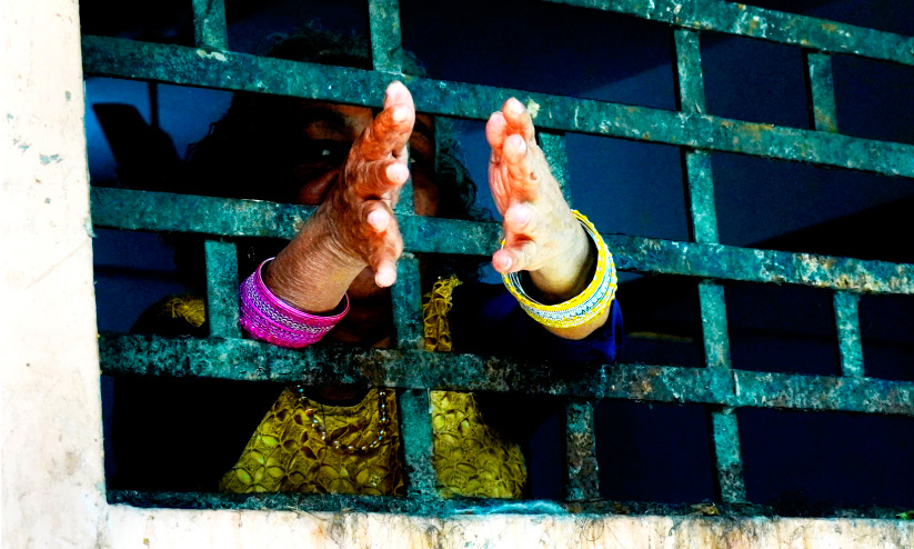 കുതിരവട്ടം മാനസികാരോഗ്യകേന്ദ്രത്തിലെ അന്തേവാസിയായ സ്ത്രീ അകത്തെ ഇരുളടഞ്ഞ മുറിയിൽനിന്ന് പുറത്തേ വെളിച്ചത്തിലേക്ക് കൈനീട്ടി സങ്കടങ്ങൾ വിളിച്ചുപറയുന്നു - കെ. വിശ്വജിത്ത്