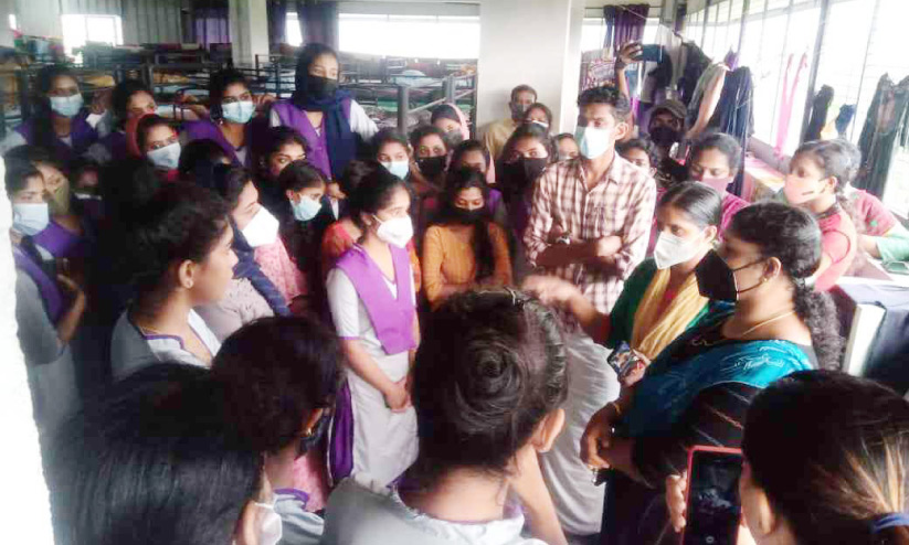 അസ്ന (20), ആതിര (22), ഷർബിന (18), ഫിന (23), നിമിഷ (22), ജിന (19), ആര്യ (21), ഷഗി (18), റിനു (22), ആരതി (18), കൃഷ്ണേന്ദു ( 22 ), ജിബിന (22), നിയ (18), ഷിൽന (21) എന്നിവരാണ് ചികിത്സയിലുള്ളത്. ഇവരിൽ ഒരാൾക്ക് കോവിഡ് റിപ്പോർട്ട് ചെയ്തിട്ടുണ്ട്. കെട്ടിടത്തിെൻറ മൂന്നാം നിലയിൽ ട്രെയിനിങ് സെൻററും നാലാം നിലയിൽ ഗേൾസ് ഹോസ്റ്റലുമാണ്. താമസ ഭക്ഷണ സൗകര്യങ്ങളും ഇതേ കെട്ടിടത്തിലാണ് ഒരുക്കിയിരിക്കുന്നത്. അടിസ്ഥാന സൗകര്യങ്ങൾ ഒരുക്കാതെയാണ് സ്ഥാപനം തുടങ്ങിയതെന്ന് വിദ്യാർഥിനികൾക്കും രക്ഷിതാക്കൾക്കും പരാതിയുണ്ട്.