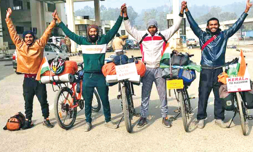 ഒക്ടോബർ 26ന് കോഴിക്കോടുനിന്ന് യാത്ര തിരിച്ച പെരുമണ്ണ വെള്ളായിക്കോട് രാമച്ചം മണ്ണിൽ ഉമൈദ് ഇബ്നു ഹുസൈൻ (20), അഴിഞ്ഞിലം, തണ്ണിപന്തൽ ജാസിൽ (23), കിണാശ്ശേരി നോർത്തിൽ ഷാഫി (20), വണ്ടൂർ നിറന്നപറമ്പ് കറുത്തേടത്ത് മുഹമ്മദ് ഫാസിൽ (21) എന്നിവരാണ് 52 ദിവസം പിന്നിട്ട് കശ്മീരിലെത്തിയത്. സുഹൃത്തുക്കളായ ഉമൈദും ജാസിലുമാണ് യാത്ര തുടങ്ങിയത്.