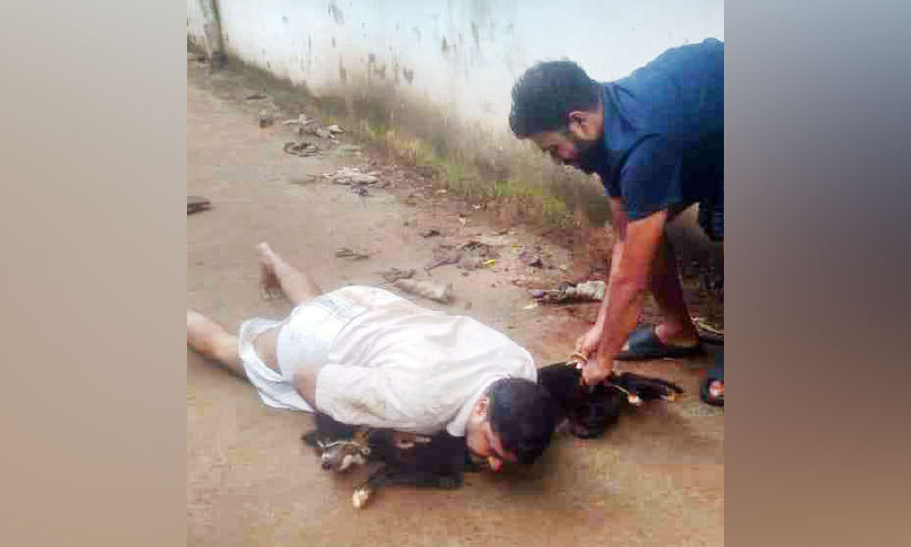കടിച്ച നായെ അബ്ദുൽ നാസർ കീഴ്പ്പെടുത്തുന്നു