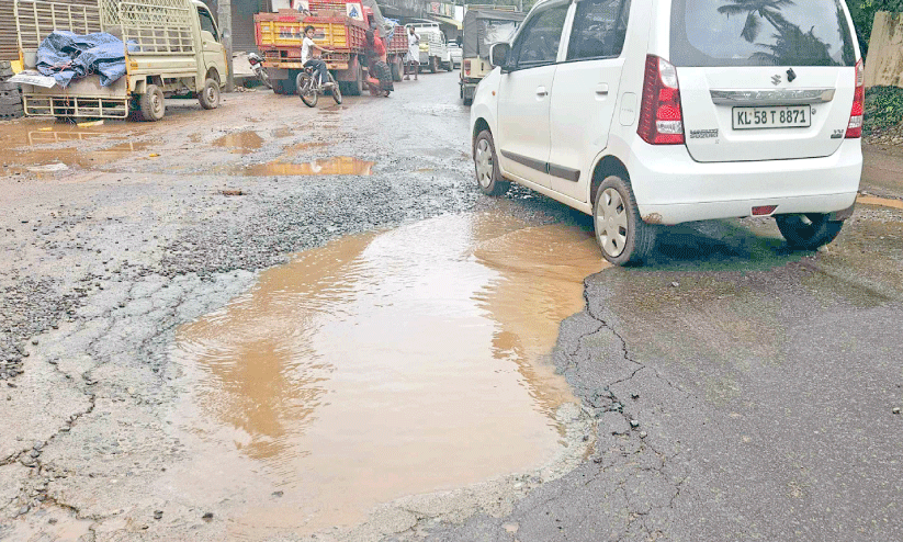 എന്നാൽ, ആദ്യ മഴയിൽതന്നെ ഇവ പൊളിഞ്ഞ് റോഡുനീളെ നീണ്ട കുഴികളായി മാറി. ഇടതടവില്ലാതെ വാഹനങ്ങൾ ചീറിപ്പായുന്ന സംസ്ഥാന പാതയിലെ ടാറിങ് മുഴുവൻ ഇളകിമാറിയിരിക്കുകയാണ്. ഭാരം കയറ്റിവരുന്ന വലിയ ലോറികൾ കുഴിയിൽനിന്ന് കരകയറുന്നത് ഭാഗ്യംകൊണ്ടാണ്.