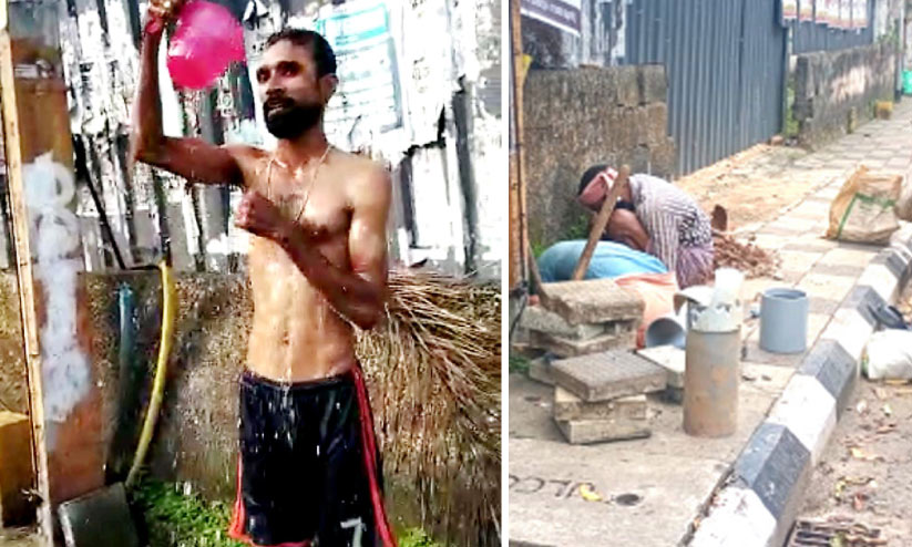text_fields1.പ്രസാദ് പൊതുറോഡിൽ കുളിച്ച് പ്രതിഷേധിക്കുന്നു 2.ചലപ്പുറം ഭജനകോവിൽ റോഡിൽ പൈപ്പ് പൊട്ടിയത് വാട്ടർ അതോറിറ്റി അധികൃതർ നന്നാക്കുന്നു