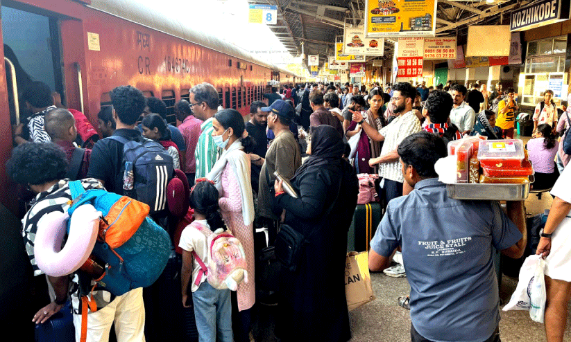 ബുധനാഴ്ച വൈകീട്ട് എറണാകുളം -ലോകമാന്യതിലക് തുരന്തോ എക്സ്പ്രസ് കോഴിക്കോട് റെയിൽവേ സ്റ്റേഷനിൽ എത്തിയപ്പോൾ പ്ലാറ്റ് ഫോം നിറയെ ട്രെയിനിൽ കയറാനുള്ള യാത്രക്കാർ കാത്തിരിക്കുന്നുണ്ടായിരുന്നു. എന്നാൽ, ജനറൽ കമ്പാർട്ട്മെന്റുകളിൽ കാലുകുത്താൻപോലും ഇടമില്ലാത്തവിധം തിരക്കായിരുന്നു. ഇതുകാരണം പലർക്കും ട്രെയിനിൽ കയറിപ്പറ്റാൻ കഴിഞ്ഞില്ല. റിസർവേഷൻ ടിക്കറ്റുകളെല്ലാം നേരത്തേ തീർന്നിരുന്നു.