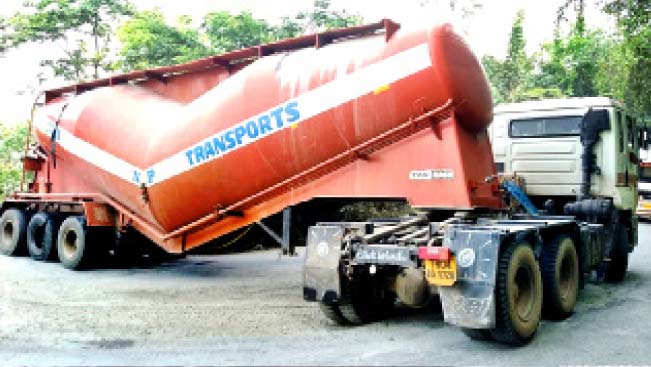 ആറാം വളവിലെത്തിയപ്പോൾ ഡിവൈഡറിൽ തട്ടി രണ്ട് ടയറുകൾ പൊട്ടിയതോടെ ഭാഗികമായി ഗതാഗത തടസ്സമായി. ചുരം സംരക്ഷണ സമിതി പ്രവർത്തകർ മണിക്കൂറുകൾ പണിപ്പെട്ട് ടയറുകൾ പുന:സ്ഥാപിച്ചു.