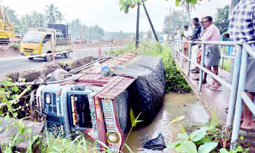 text_fieldsദേശീയപാതയിൽ കരിമ്പനപ്പാലം തോട്ടിലേക്ക് മറിഞ്ഞ ലോറി