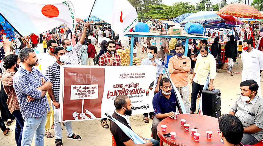 കോഴിക്കോട്: പന്തീരങ്കാവ് യു.എ.പി.എ കേസിൽ സർക്കാർ വാദം പൊളിയുന്നു എന്ന മുദ്രാവാക്യം ഉയർത്തി സോളിഡാരിറ്റി ജില്ല കമ്മിറ്റി നേതൃത്വത്തിൽ ബീച്ചിൽ 'ചായ കുടിച്ച് പ്രതിഷേധം' നടത്തി. സോളിഡാരിറ്റി സംസ്ഥാന സെക്രട്ടറി ഒ.കെ. ഫാരിസ് പ്രതിഷേധം ഉദ്ഘാടനം ചെയ്തു. അലനും ത്വാഹയും ചായ കുടിക്കാൻ പോയവരല്ലെന്ന് പറഞ്ഞ മുഖ്യമന്ത്രി പിണറായി വിജയൻ മാപ്പുപറയണമെന്ന് അദ്ദേഹം ആവശ്യപ്പെട്ടു. ബീച്ചിൽ നടത്തിയ പ്രകടനത്തിന് ശേഷം പ്രവർത്തകർ ഒന്നിച്ചിരുന്ന് ചായകുടിച്ച് പ്രതിഷേധത്തിൽ പങ്കാളികളായി. ജില്ല പ്രസിഡൻറ് നൂഹ് ചേളന്നൂർ അധ്യക്ഷത വഹിച്ചു. ജില്ല കമ്മിറ്റി അംഗം എം. അബ്്ദുൽ ഖയ്യ്, ജില്ല സെക്രട്ടറി സ്വാബിർ മുനഫർ തങ്ങൾ, സിറ്റി പ്രസിഡൻറ് കെ.പി. സലാം എന്നിവർ സംസാരിച്ചു. ഷാഹുൽ ഹമീദ് കക്കോടി സ്വാഗതം പറഞ്ഞു.