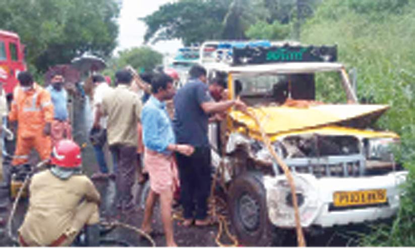 വാഹനാപകടം; കാബിനിൽ കുടുങ്ങിയ ഡ്രൈവറെ അഗ്നിശമന സേന രക്ഷപ്പെടുത്തി