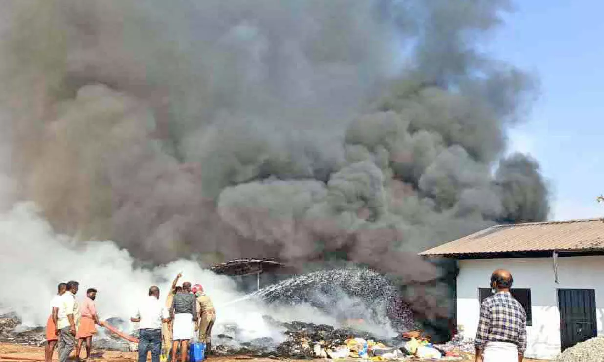 പ്ലാസ്റ്റിക് മാലിന്യ ശേഖരണ കേന്ദ്രത്തിൽ വൻ തീപിടിത്തം