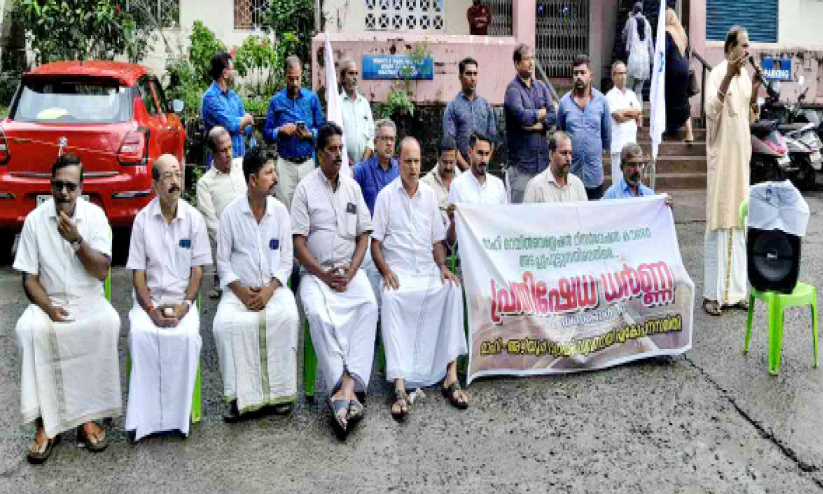 തീരുമാനത്തിനെതിരെ വ്യാപാരികൾ ധർണ നടത്തുന്നു