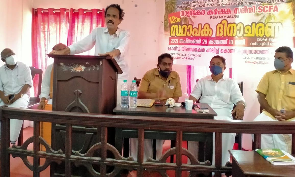 വടകര: മാങ്കൊമ്പ് നെല്ല് ഗവേഷണ കേന്ദ്രത്തിന്റെ മാതൃകയിൽ തെങ്ങ് ഗവേഷണ കേന്ദ്രങ്ങൾ സ്ഥാപിക്കണമെന്നും നാളികേരകർഷകർക്ക് ഗുണമേന്മയുള്ള തെങ്ങിൽ തൈകൾ വിതരണം ചെയ്യണമെന്നും സംസ്ഥാന നാളികേരകർഷക സമിതി( എസ്.സി.എഫ്.എ) ആവശ്യപ്പെട്ടു. സമിതിയുടെ 12ാം സ്ഥാപക ദിനാചരണത്തോടനുബന്ധിച്ച് വടകര ആലക്കൽ റസിഡൻസി ഓഡിറ്റോറിയത്തിൽ സംഘടിപ്പിച്ച പരിപാടി മുൻ എം.എൽ.എ അഡ്വ. എം.കെ പ്രേംനാഥ് ഉൽഘാടനം ചെയ്തു. സംസ്ഥാന പ്രസിഡന്റ് ഇളമന ഹരിദാസ് അധ്യക്ഷത വഹിച്ചു.