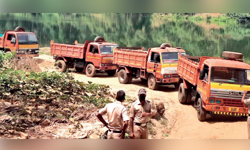 മണൽമാഫിയ എസ്കോർട്ട് വാഹനങ്ങൾ നിർത്തി പൊലീസിനെ നിരീക്ഷിക്കുന്ന പശ്ചാത്തലത്തിൽ തെരഞ്ഞെടുപ്പ് സ്റ്റിക്കർ ഒട്ടിച്ച വാഹനത്തിൽ എത്തിയാണ് മണൽവേട്ട നടത്തിയത്.
