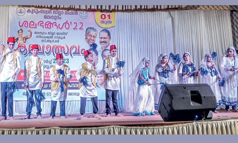 മലപ്പുറം: സന്തോഷം ആവേശം തീർത്ത കലാവേദിയിൽ അവർ അതിജീവനത്തിന്റെ കലാപ്രകടനങ്ങൾ ഒന്നൊന്നായി നെയ്തെടുത്തപ്പോൾ വേദിയിലും സദസ്സിലും ഒന്നാകെ പ്രതീക്ഷയുടെ ശലഭങ്ങൾ പറന്നിറങ്ങി. ജില്ലയിലെ ഭിന്നശേഷി കുട്ടികളുടെ കലാപ്രകടനങ്ങൾക്ക് വേദിയായ മലപ്പുറം ടൗൺ ഹാളിൽ കഴിഞ്ഞ രണ്ട് ദിവസങ്ങളിലായി നടന്ന ബഡ്സ്, ബി.ആർ.സി കലോത്സവം 'ശലഭങ്ങൾ -22'ന് സന്തോഷം നിറഞ്ഞ സമാപനം. കലോത്സവത്തിൽ വട്ടംകുളം ബഡ്സ് സ്കൂൾ ഓവറോൾ ചാമ്പ്യൻമാരായി.