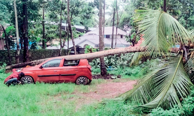 മഴയിൽ കാറിന് മുകളിൽ വീണ തെങ്ങ്