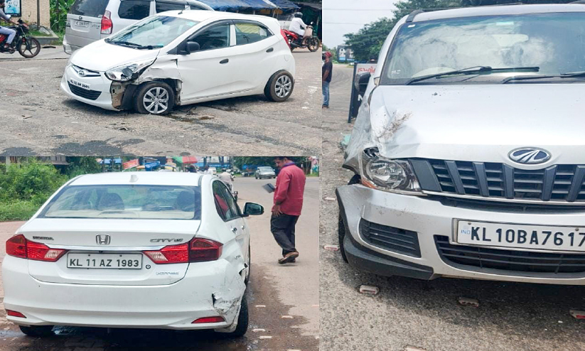 ചങ്ങരംകുളത്ത് മൂന്നു കാറുകൾ കൂട്ടിയിടിച്ചു; യാത്രക്കാർ അദ്ഭുതകരമായി രക്ഷപ്പെട്ടു